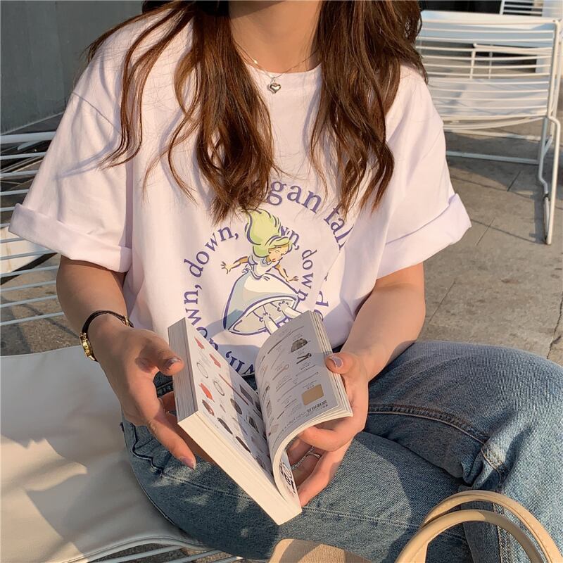 スタンダードプリントルーズTシャツ サマーラウンドネックプルオーバー カジュアルトップス レトロ 夏物 Oネック 韓国婦人88850491737
