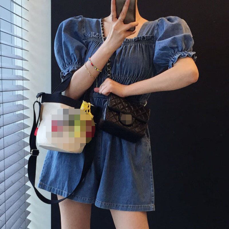 サマースタンダードカラーウェストルーズスリーブジャンプスーツ オールインワン ショーツ レディース レトロ 夏物 ブルマー スクウェア 韓国婦人45527571335