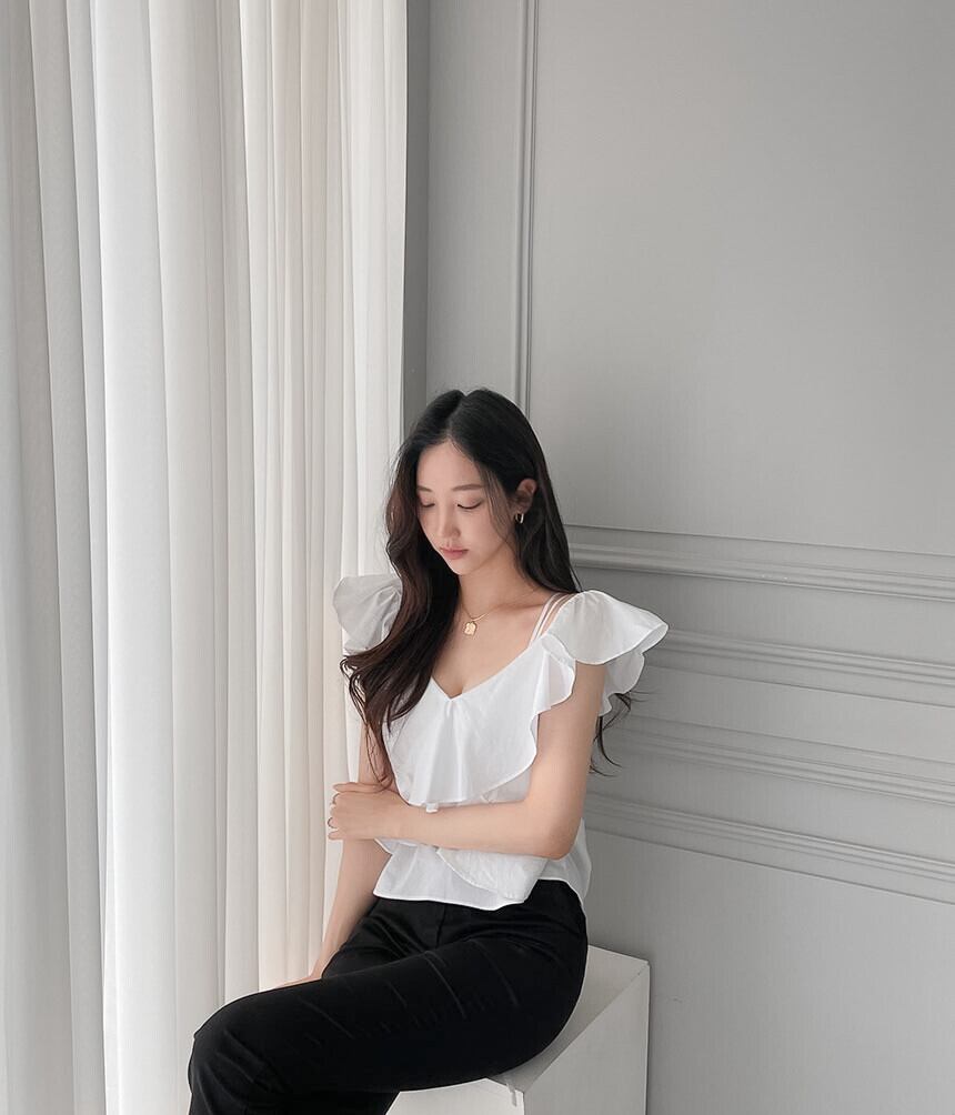 サマースタンダードスタイルVネックルーズノースリーブシャツ ブラウス レディース レトロ 夏物 韓国婦人51280296146