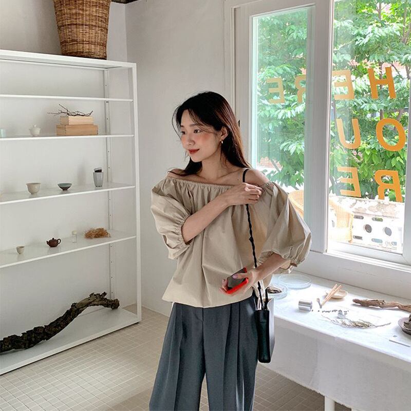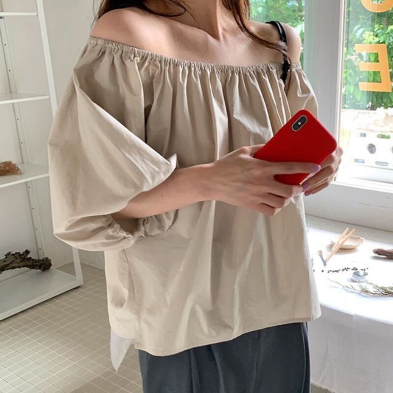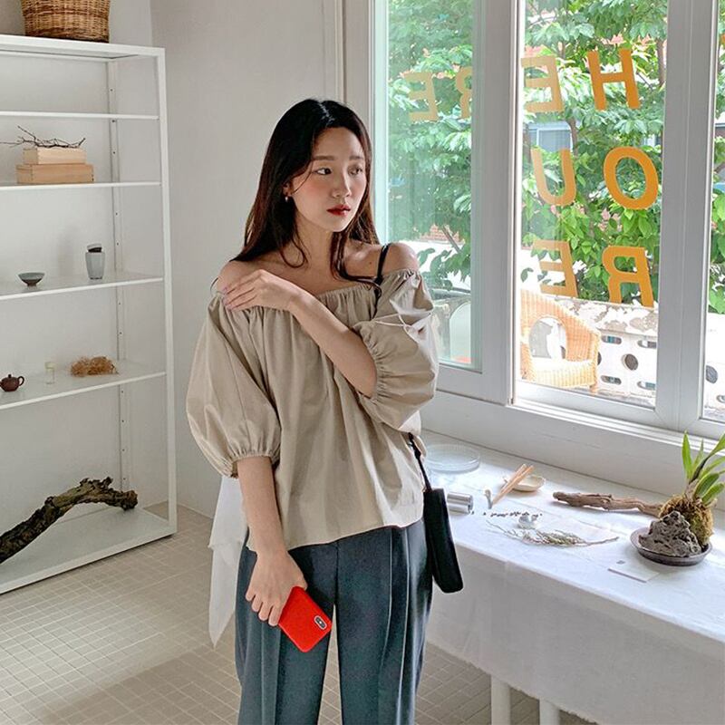 サマースタイルカラーストラップレススリーブシャツ レディースルーズトップス ランタンスリーブ 夏物 ピュア 韓国婦人52107174564