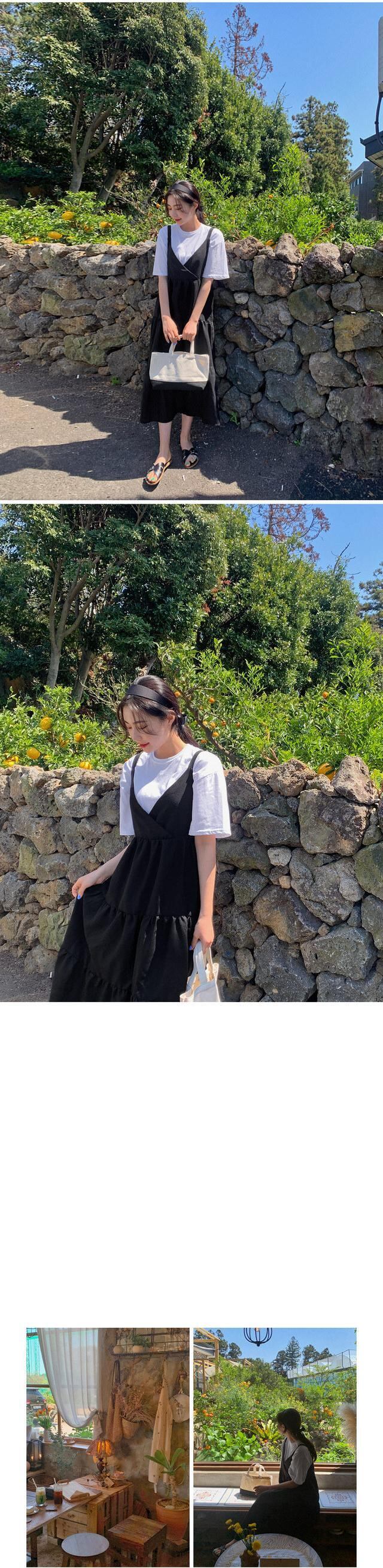 サマードレス ホワイトスリーブTシャツ Vネックスカート ロング 夏物 韓国婦人46819876877