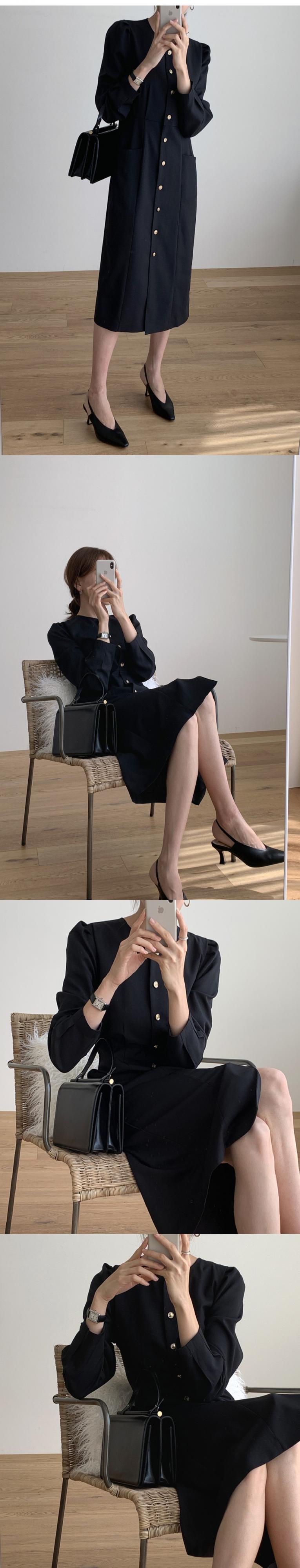 サマーラウンドネックスリムロングスリーブドレス スタンダード レトロ 夏物 Oネック 韓国婦人91674437765