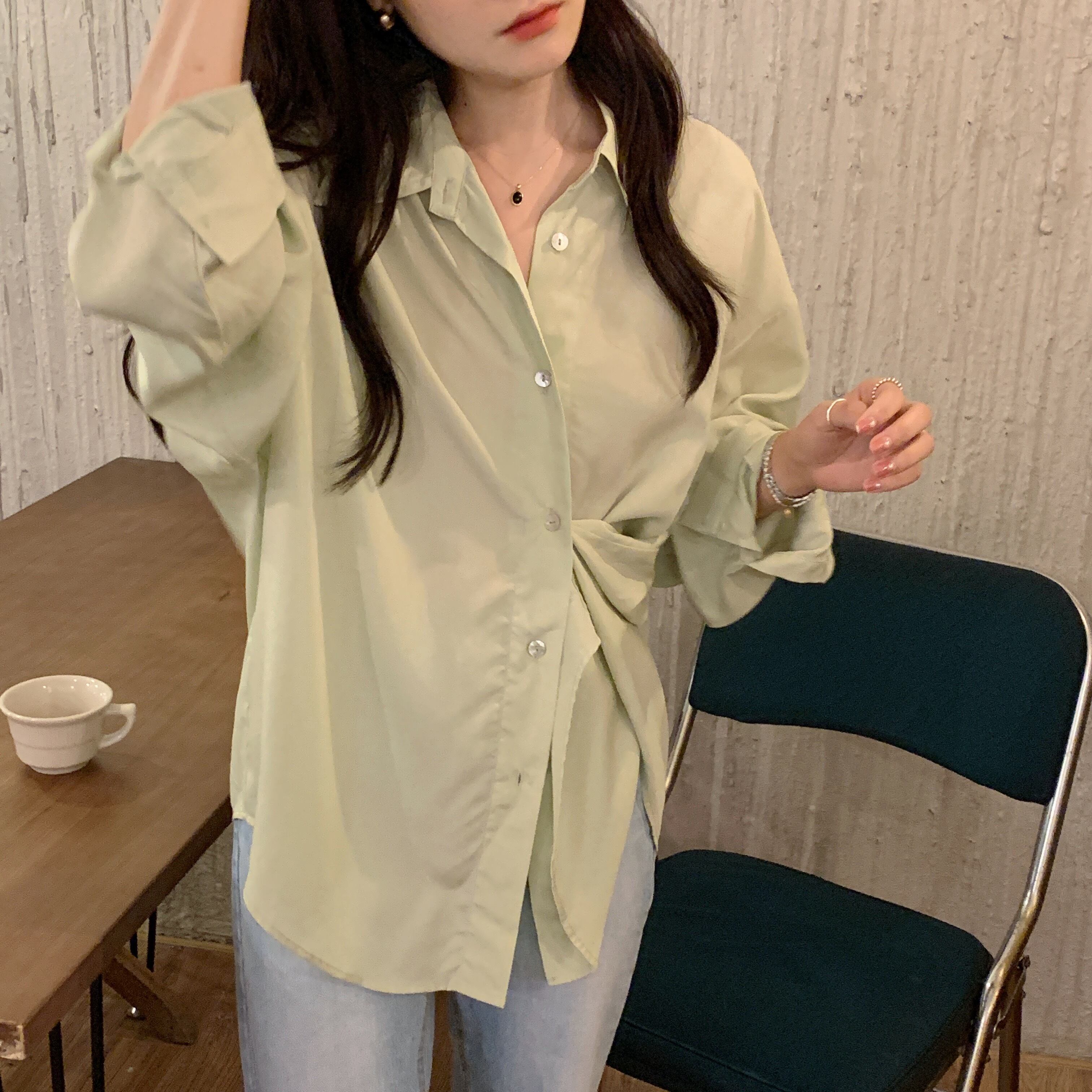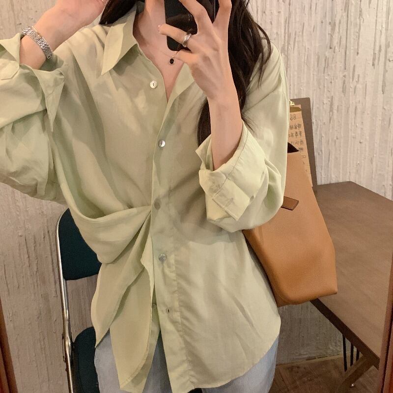 サマールーズソリッド カラーシャツ レディース ロング 夏物 ソリッドカラー 韓国婦人28768434593