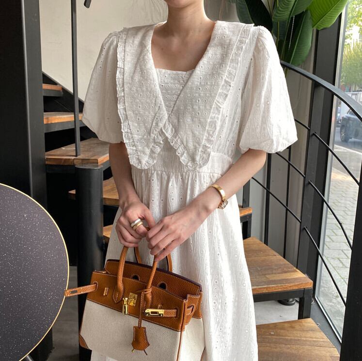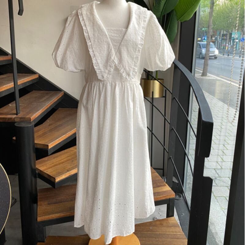 サマースタンダードスリーブロングウェスト薄手レースドレス レディース レトロ 夏物 韓国婦人71022335292