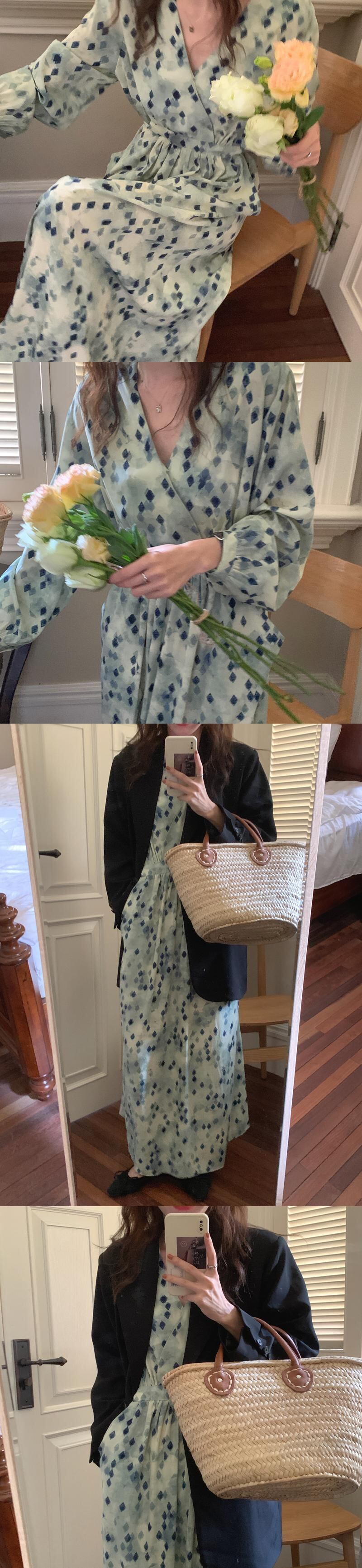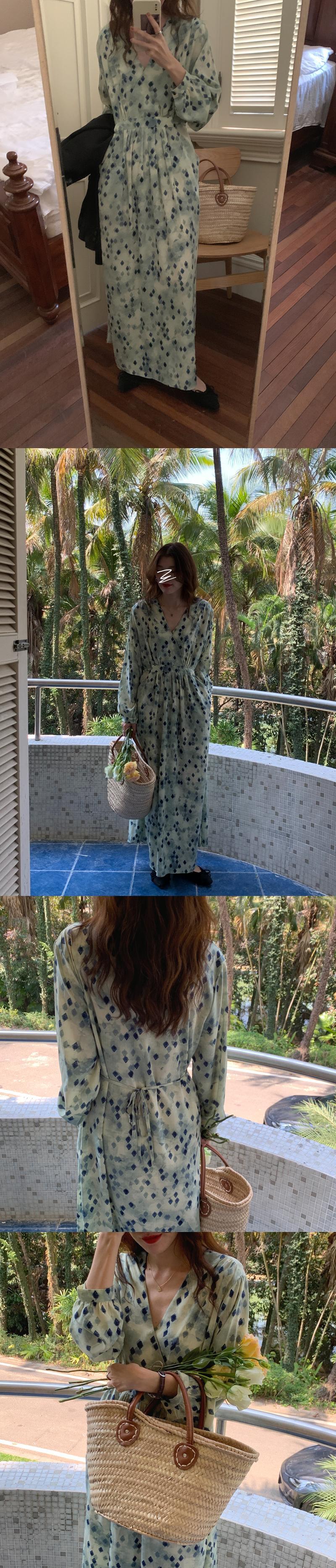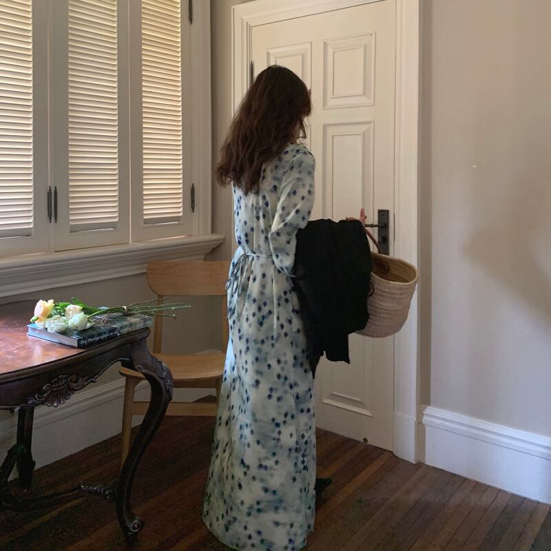 カラーVネックウェストロングドレス サマーシフォンスカート エレガント 夏物 スクウェア 韓国婦人21240637029