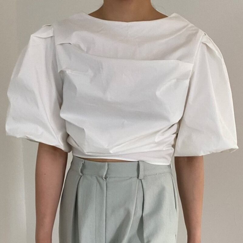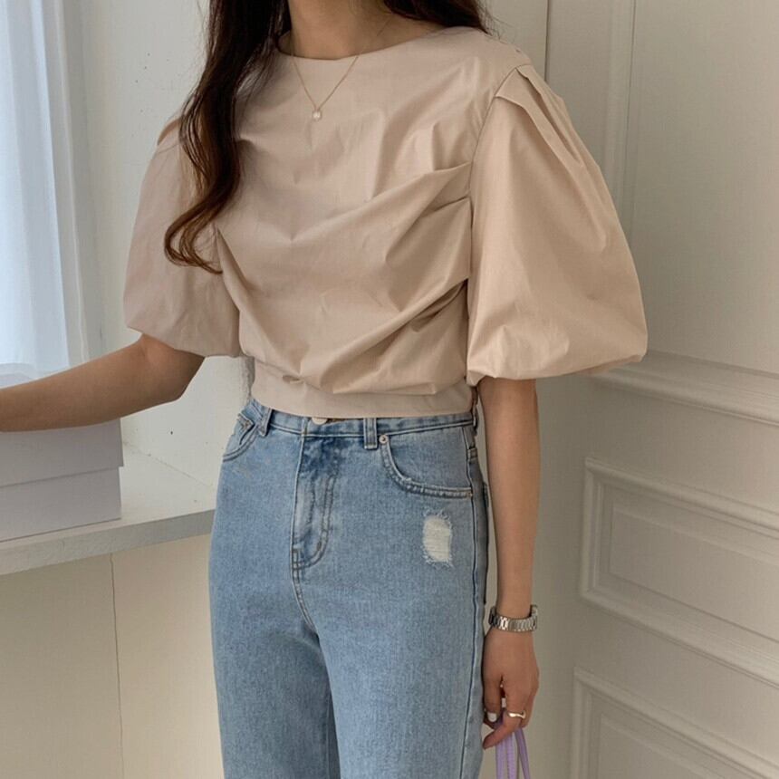 スリーブシャツ スタイルラウンドネックソリッド カラーサマー 夏物 Oネック ソリッドカラー 韓国婦人52651563220