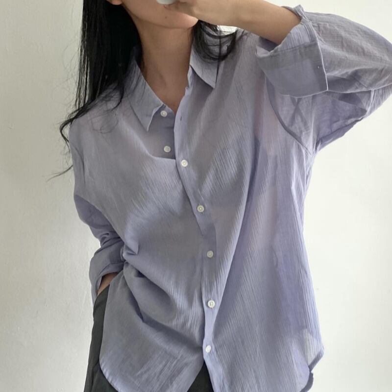 サマースタンダードスタイルルーズシャツ レディース ロング レトロ 夏物 韓国婦人2550751957