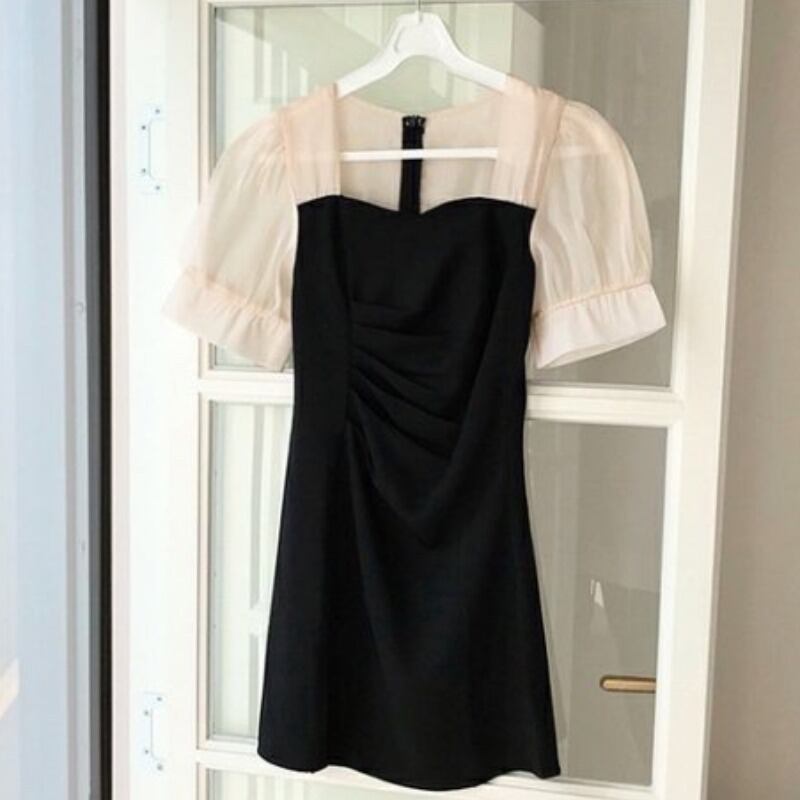 サマーメッシュスリーブドレス スカート 夏物 スクウェア ステッチ 韓国婦人59704497483