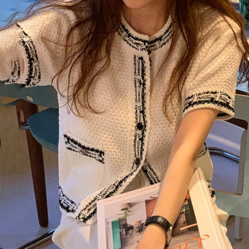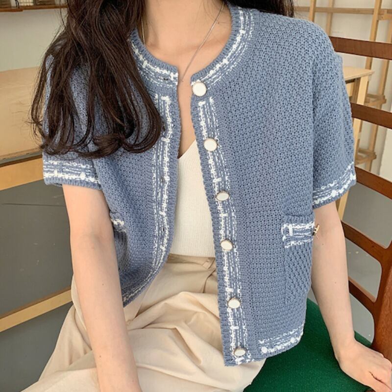 スタンダードカラーラウンドネックセーター 薄手サマーブレザー レトロ 夏物 Oネック 韓国婦人97969477283