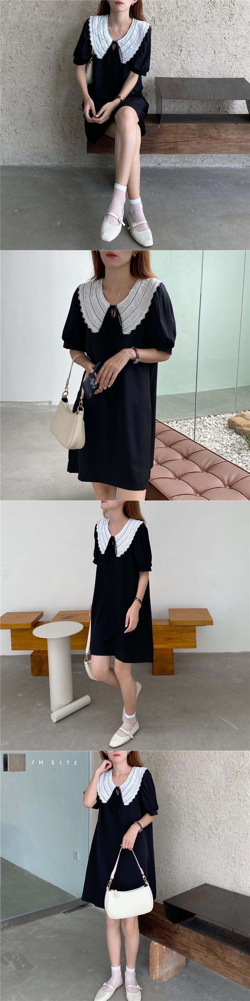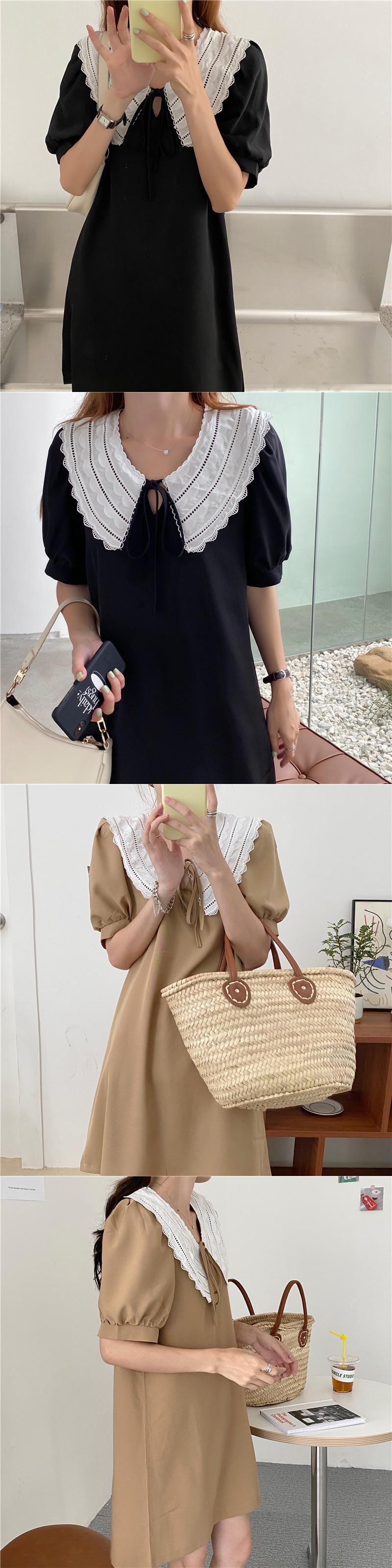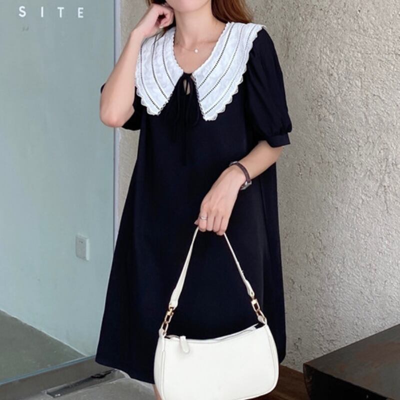 レースカラールーズスリーブドレス サマースタイルスカート 大人ガーリー スウィート キュート カジュアル 夏物 韓国婦人90319635339