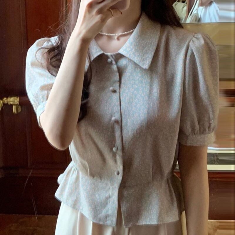 サマースタンダードスリーブウェストショートシャツ トップス レディース レトロ 夏物 韓国婦人44000827374