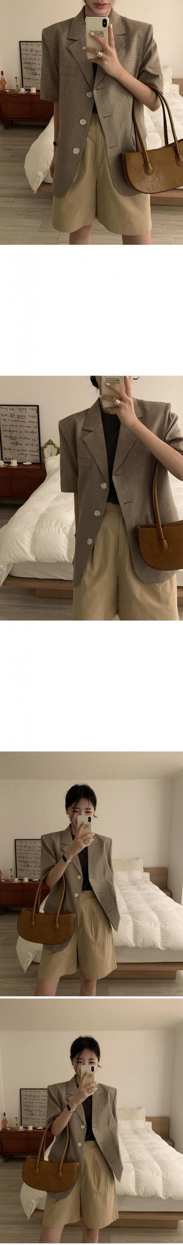 サマースタンダードボタン格子柄ジャケット ハイウェストウェストカジュアルショーツ レディース レトロ 夏物 ブルマー 韓国婦人96012457396