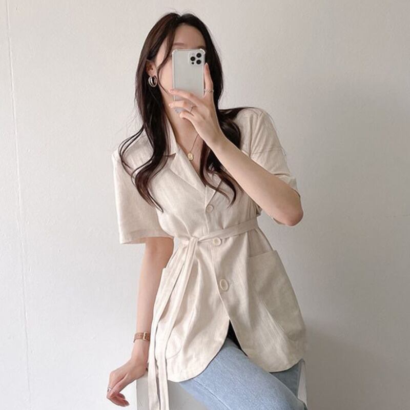 サマーカラーカジュアルウェストジャケット トップス 夏物 韓国婦人13644264922