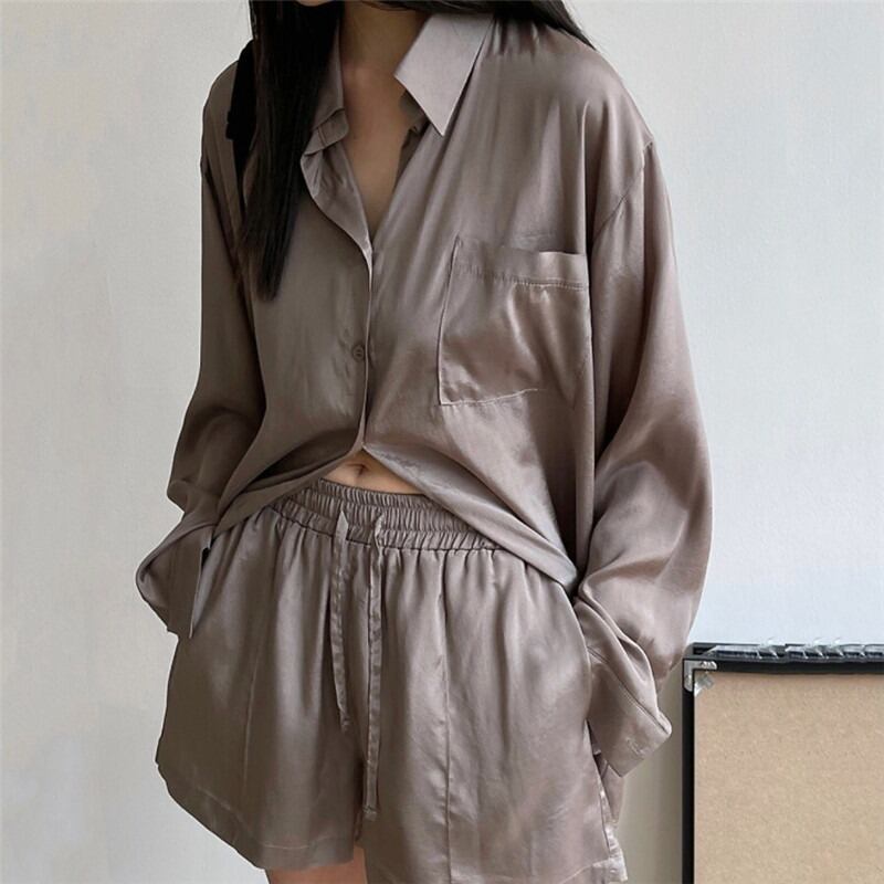 サマーサテンシャツ ストレッチウェストカジュアルショーツ レディース エラスティック 伸縮 夏物 ブルマー 韓国婦人18974419346