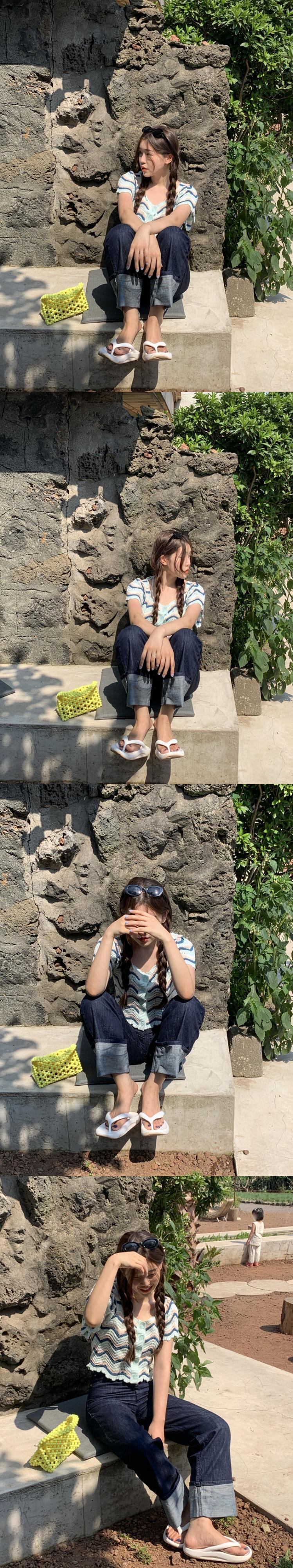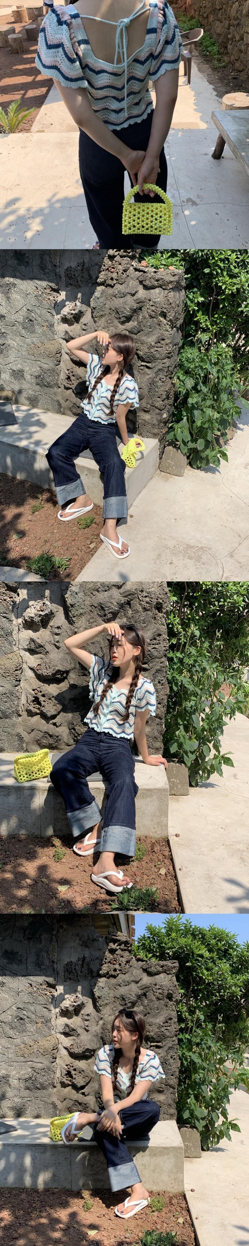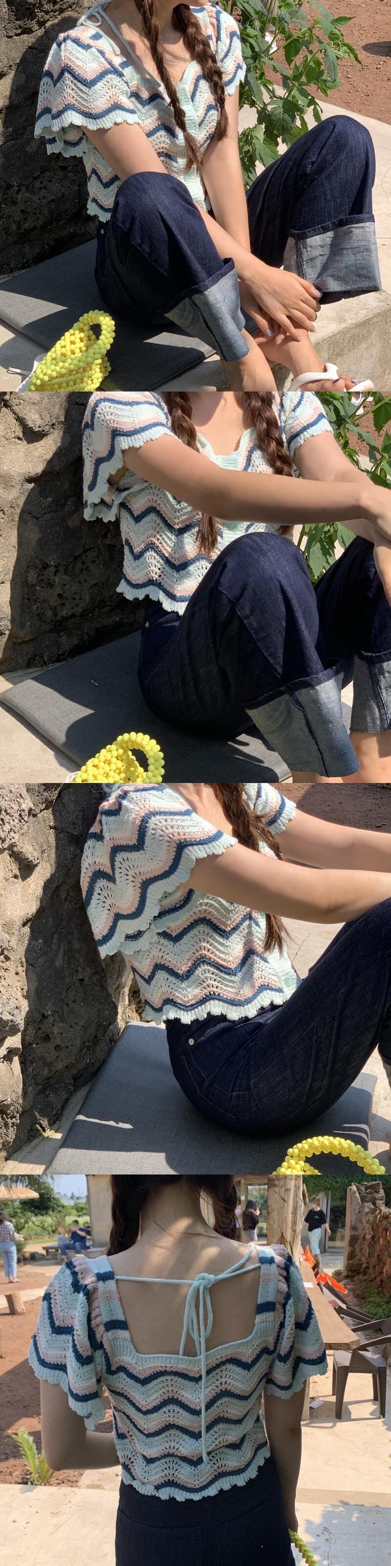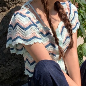 サマースタンダードカラーパターンホルターレースショートニットセーター トップス レディース レトロ 夏物 韓国婦人34879709475