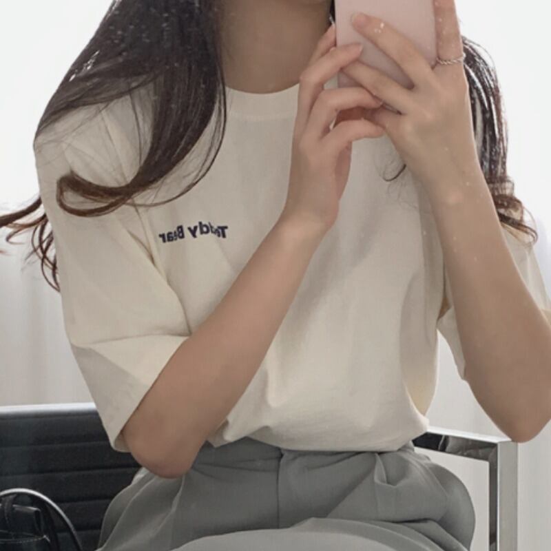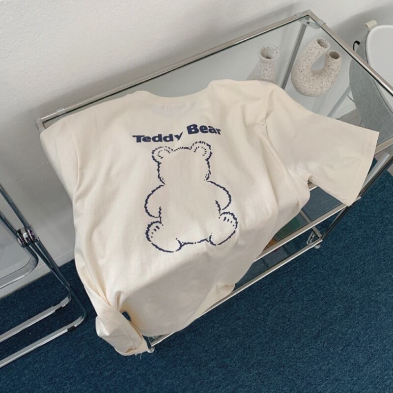 スプリングサマーバックプリント柄ラウンドネックTシャツ トップス 春物 夏物 Oネック 韓国婦人35877787894
