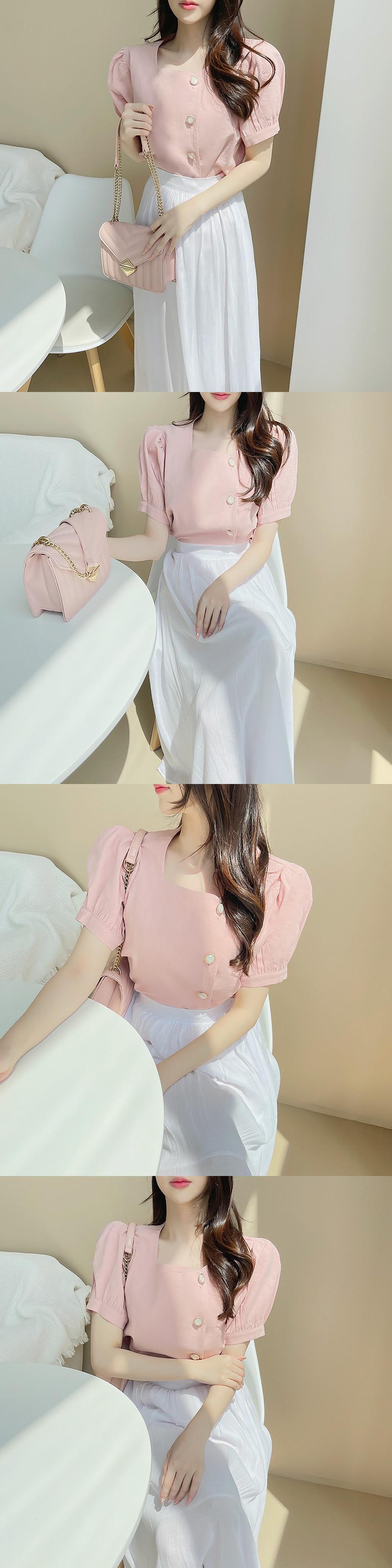 サマースタイルカラースリーブシャツ トップス 夏物 スクウェア 韓国婦人15910385572