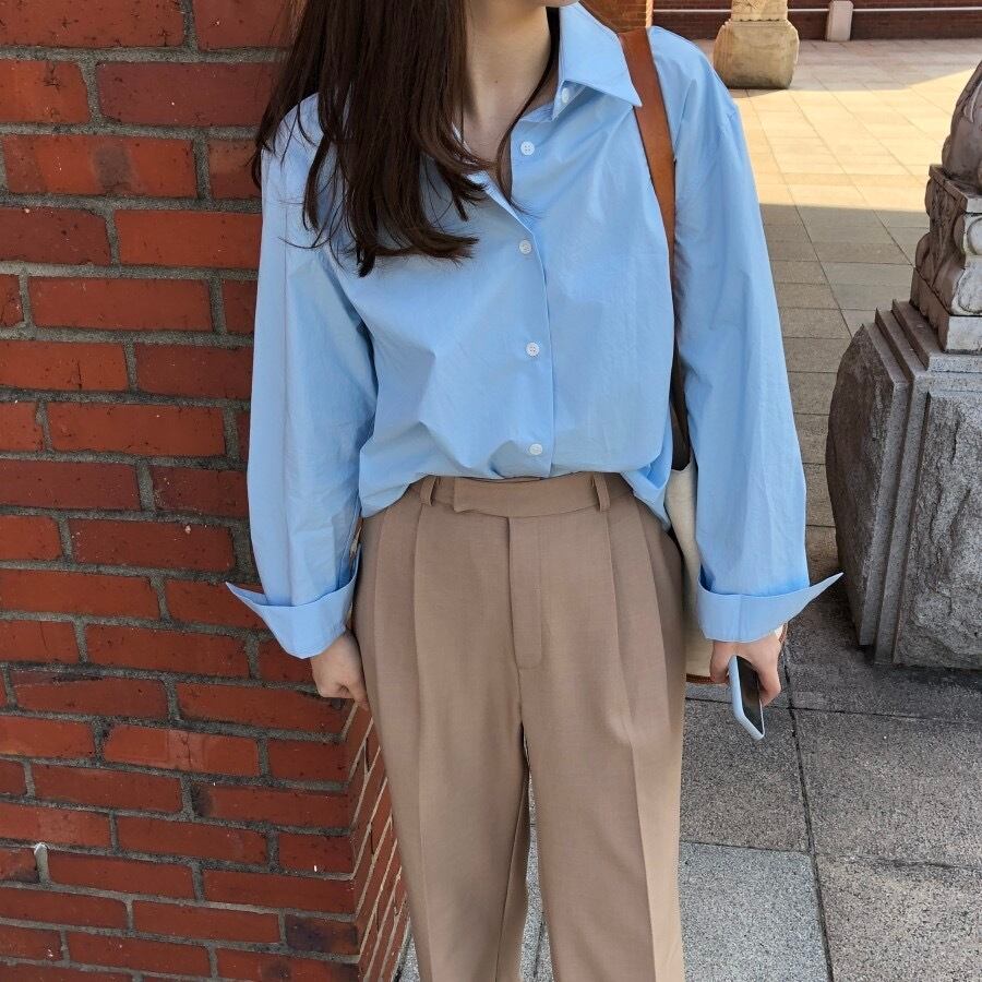 スタンダードスタイルベーシックシャツ トップス レディース ロング レトロ 韓国婦人23345930555