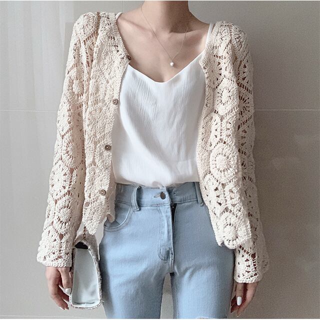 サマースタイルルーズレースシャツ ロング 大人ガーリー スウィート キュート カジュアル 夏物 韓国婦人94101913932