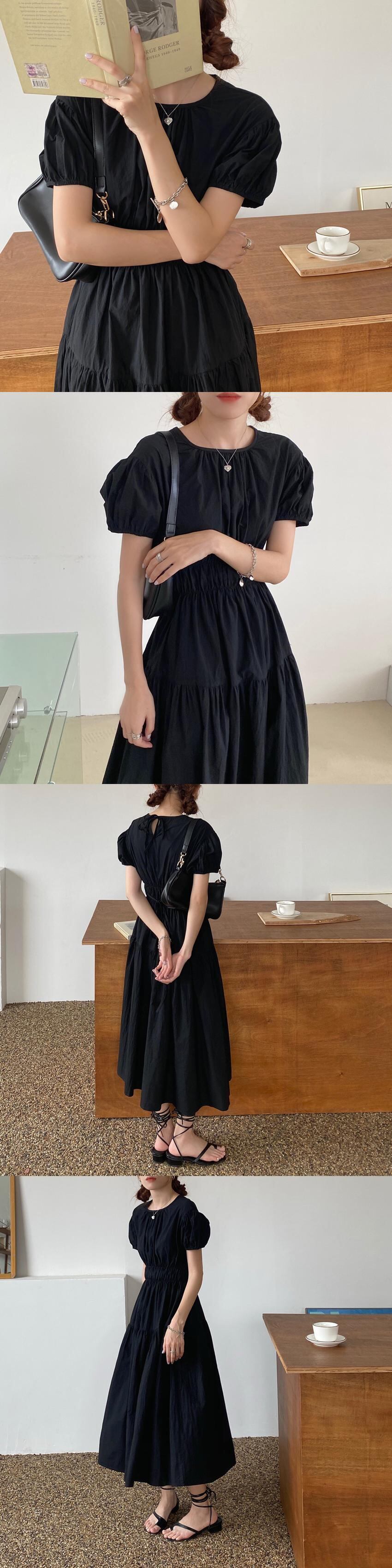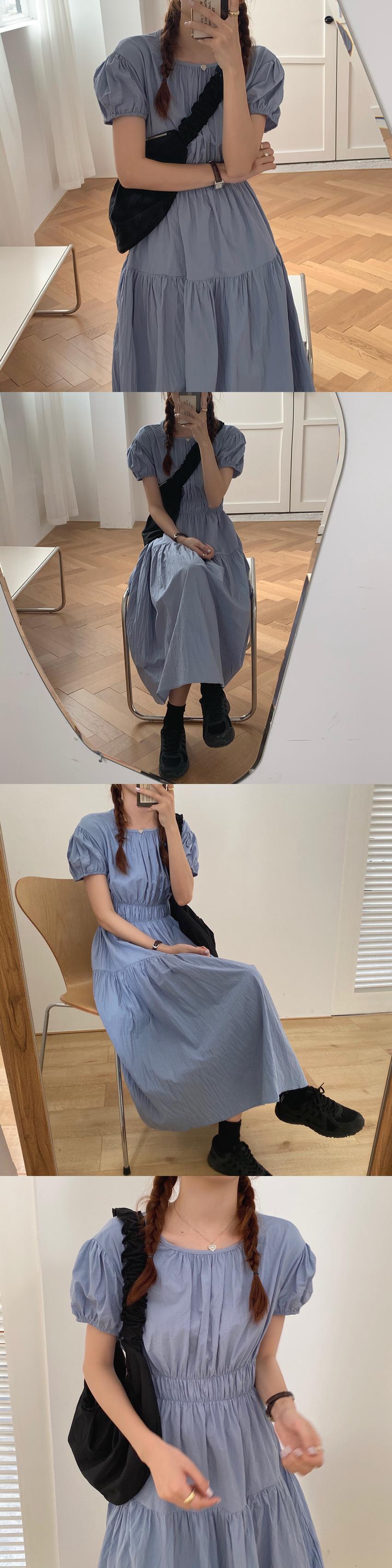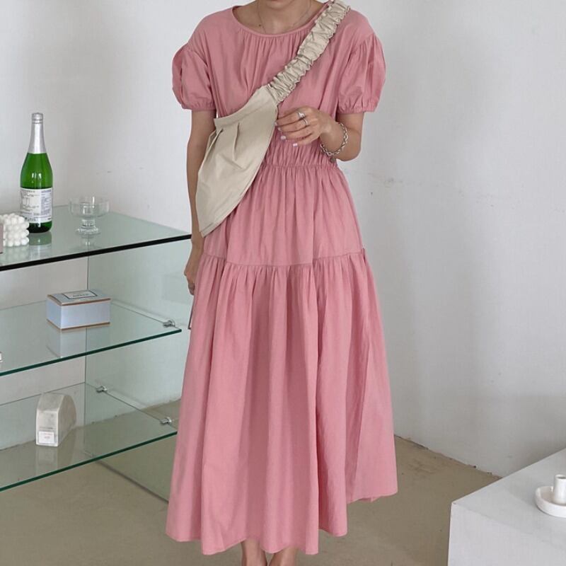 サマーラウンドネックプリーツドレス ウェストルーズロングスカート 夏物 Oネック 韓国婦人70426668275
