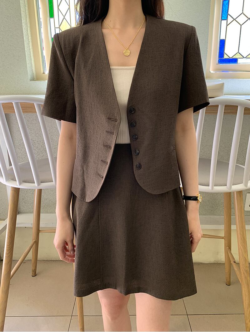 Vネックジャケット スタンダードスタイルハイウェストウェストスカート サマー レトロ 夏物 韓国婦人26640778922