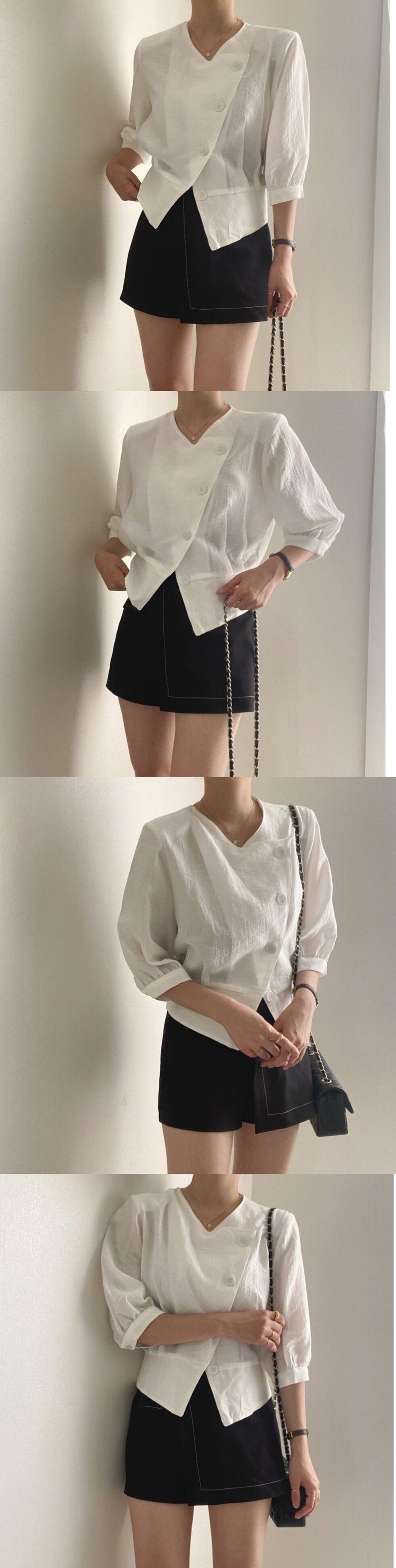 サマーボタンスリーブシャツ ショートトップス 夏物 韓国婦人535434239