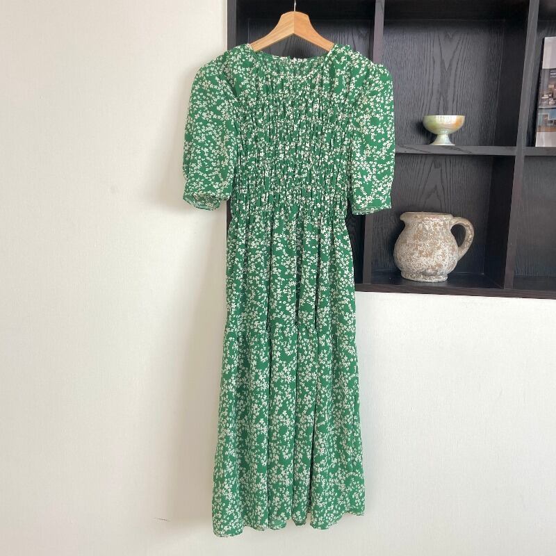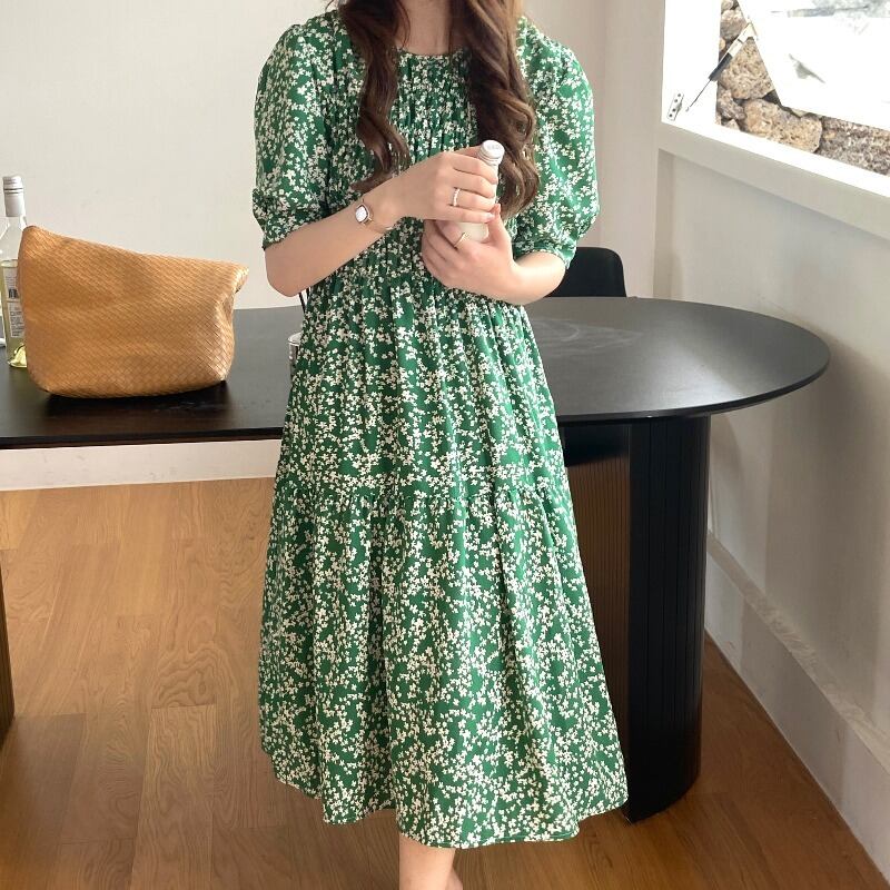 ウェスト薄手フローラルドレス プリーツ 花柄 韓国婦人99103781869