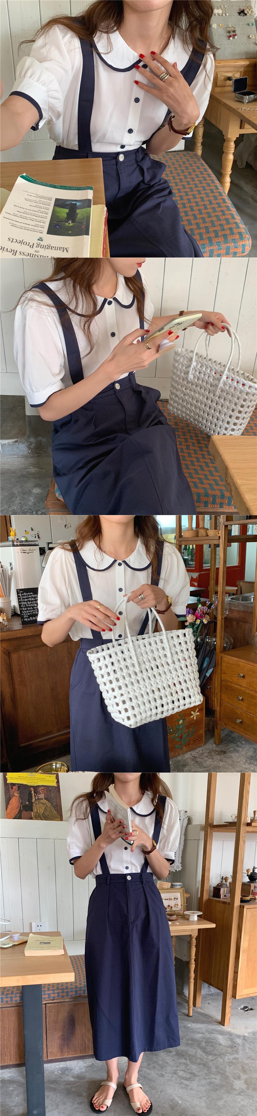 色:ネイビーブルーのシャツ,白のシャツ,白いスカート,ネイビーブルーのスカート
