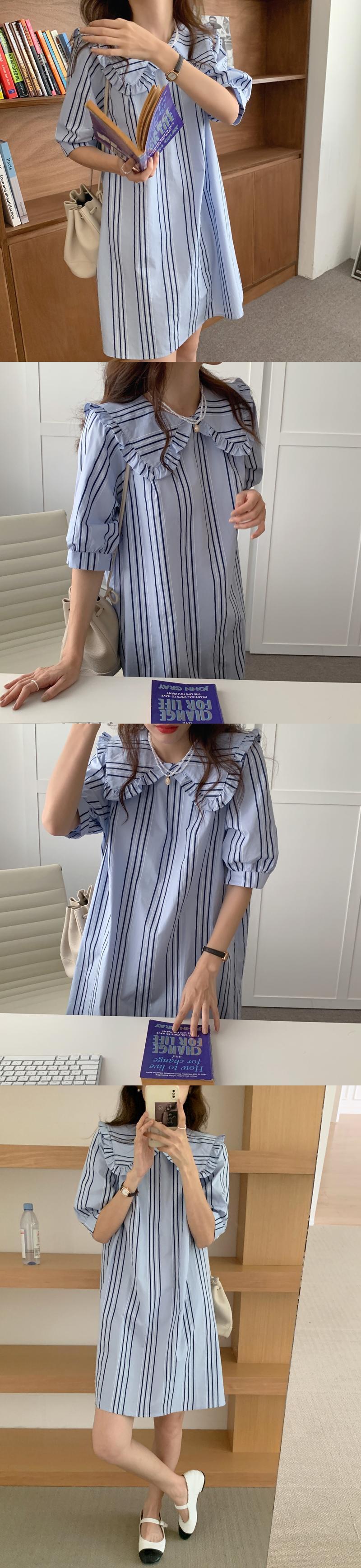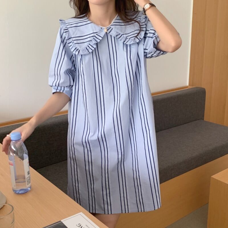 スカート サマーカラーストライプドレス スリーブシャツ 大人ガーリー スウィート キュート カジュアル 夏物 韓国婦人95952624214