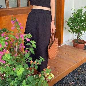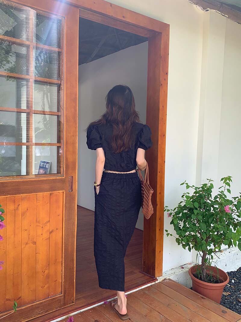 サマースタイルスリーブショートトップス ロングストレッチウェストスカート レディース ランタンスリーブ エラスティック 伸縮 夏物 韓国婦人96800042133