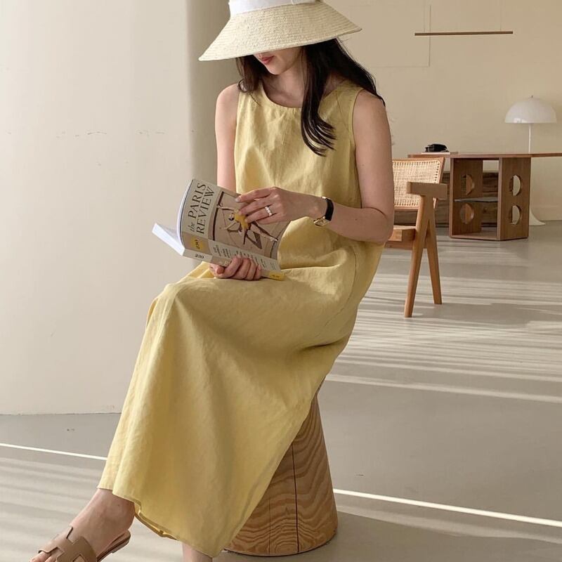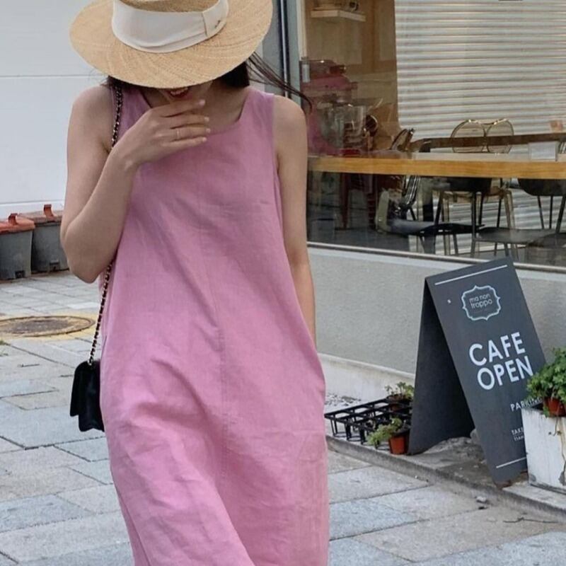 サマーミニマリストラウンドネックルーズ薄手ソリッド カラーロングノースリーブドレス レディース 長袖 夏物 Oネック ソリッドカラー 韓国婦人76990505266