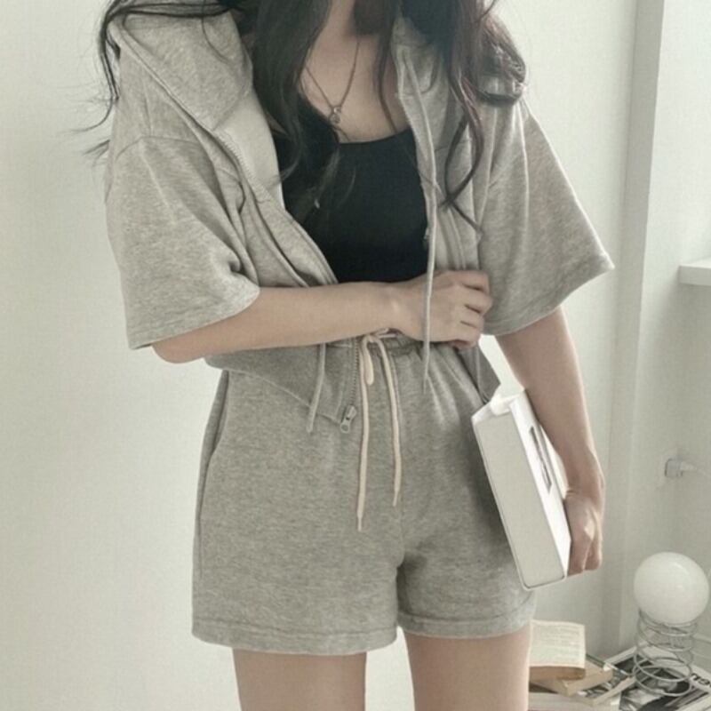 サマーフードジャケット ストレッチウェストショーツ エラスティック 伸縮 夏物 ブルマー 韓国婦人2496692007