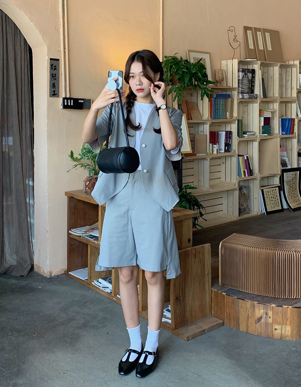 サマースタンダードVネックプリーツショーツ レディース レトロ ストリート 夏物 ブルマー 韓国婦人44373259735