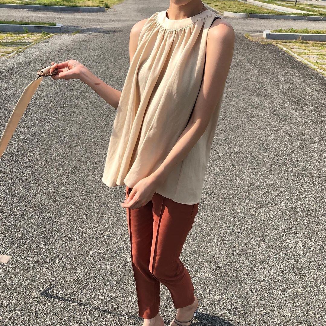 サマースタンダードノースリーブシャツ スタイルウェスト薄手トップス レトロ 夏物 韓国婦人75349922548