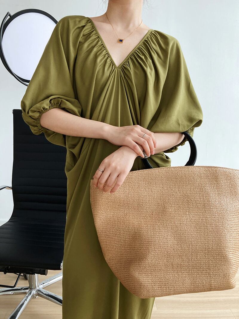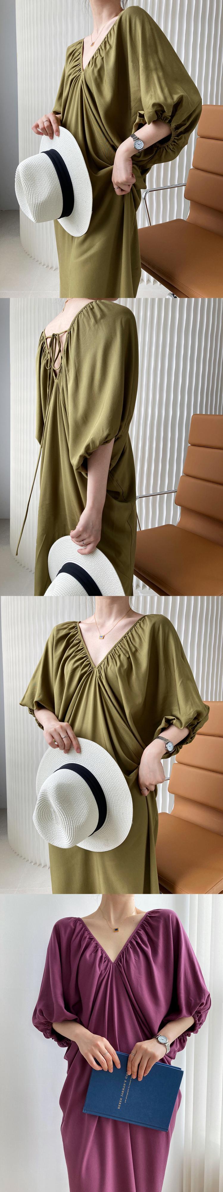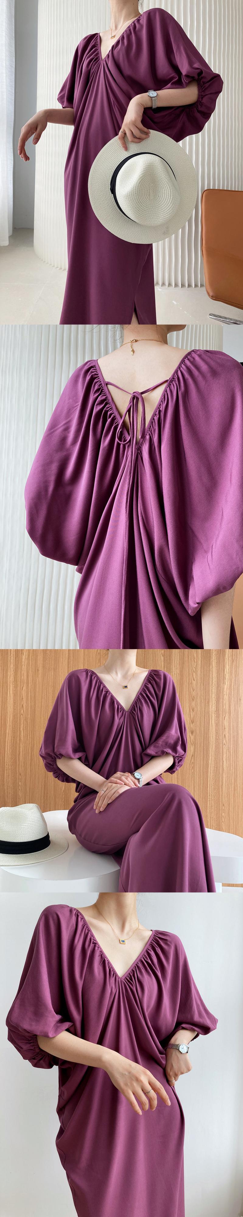 サマースタンダードVネックスタイルホルターストラップ ロングルーズドレス レディース レトロ 夏物 韓国婦人61123024513