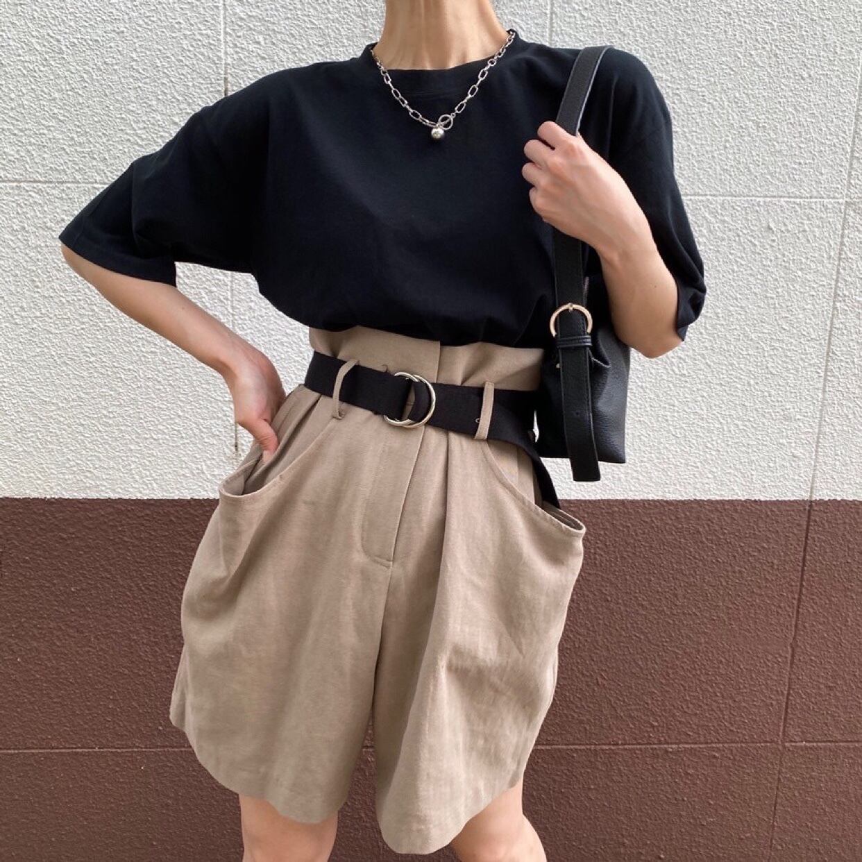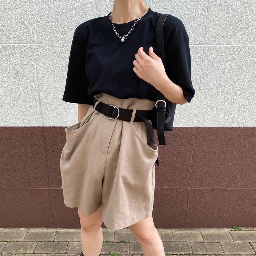 レッドサマールーズTシャツ スタンダードハイウェストウェストカジュアルショーツ ベルト レトロ ストリート 夏物 ハーネス ブルマー 韓国婦人47537764210