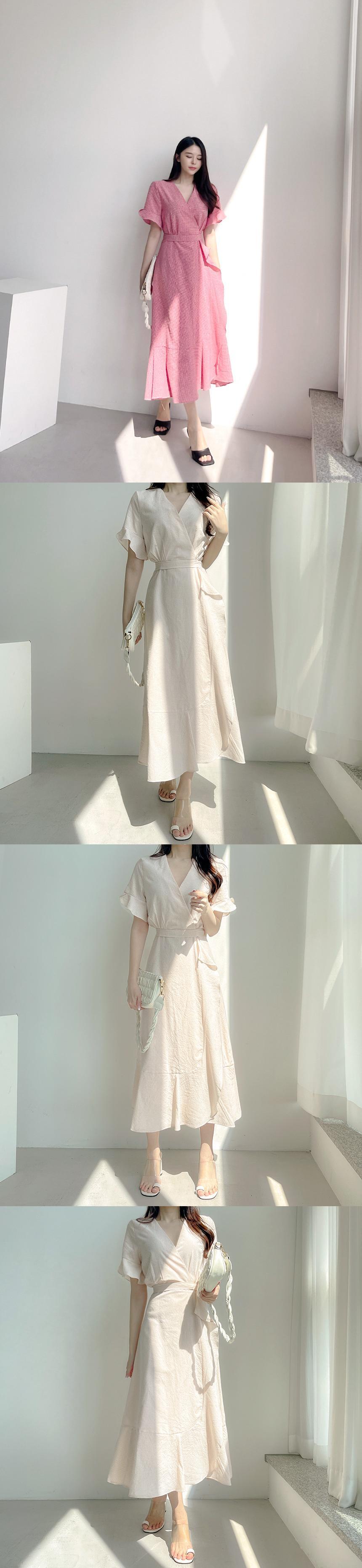 Vネックスリーブ格子柄ドレス サマーウェスト薄手スカート 夏物 韓国婦人59735438255