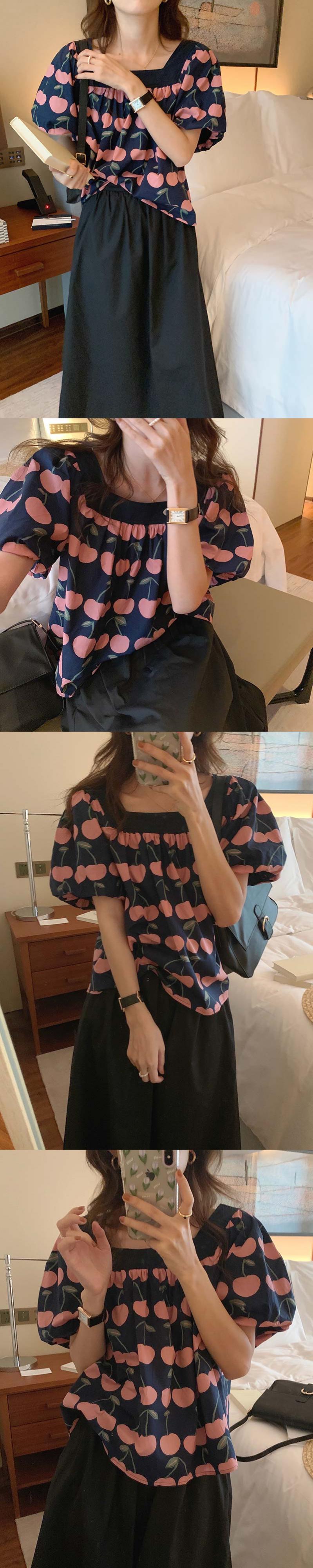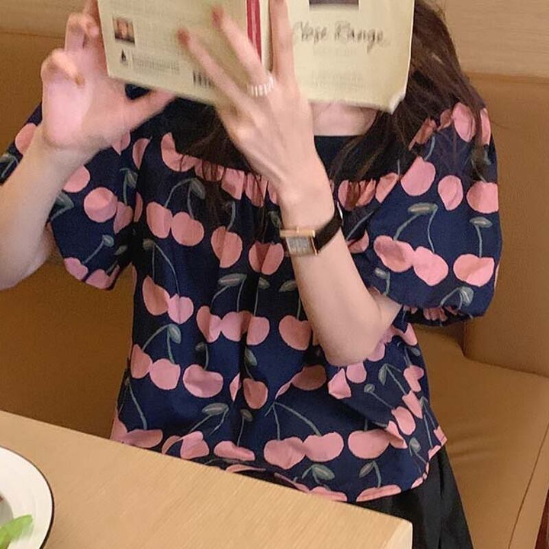サマースタンダードプリント柄スリーブカラールーズシャツ レトロ 夏物 スクウェア 韓国婦人79174681138