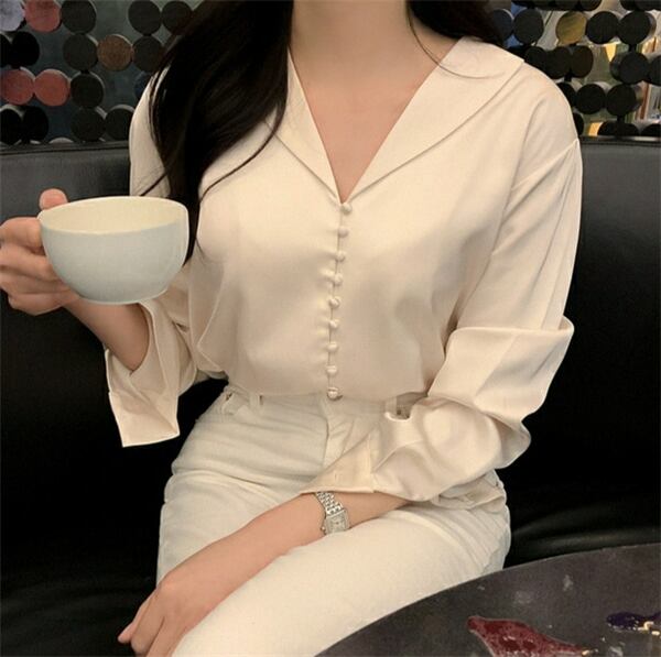 サマースタンダードブラウス ルーズシャツ レトロ 夏物 韓国婦人6023295947