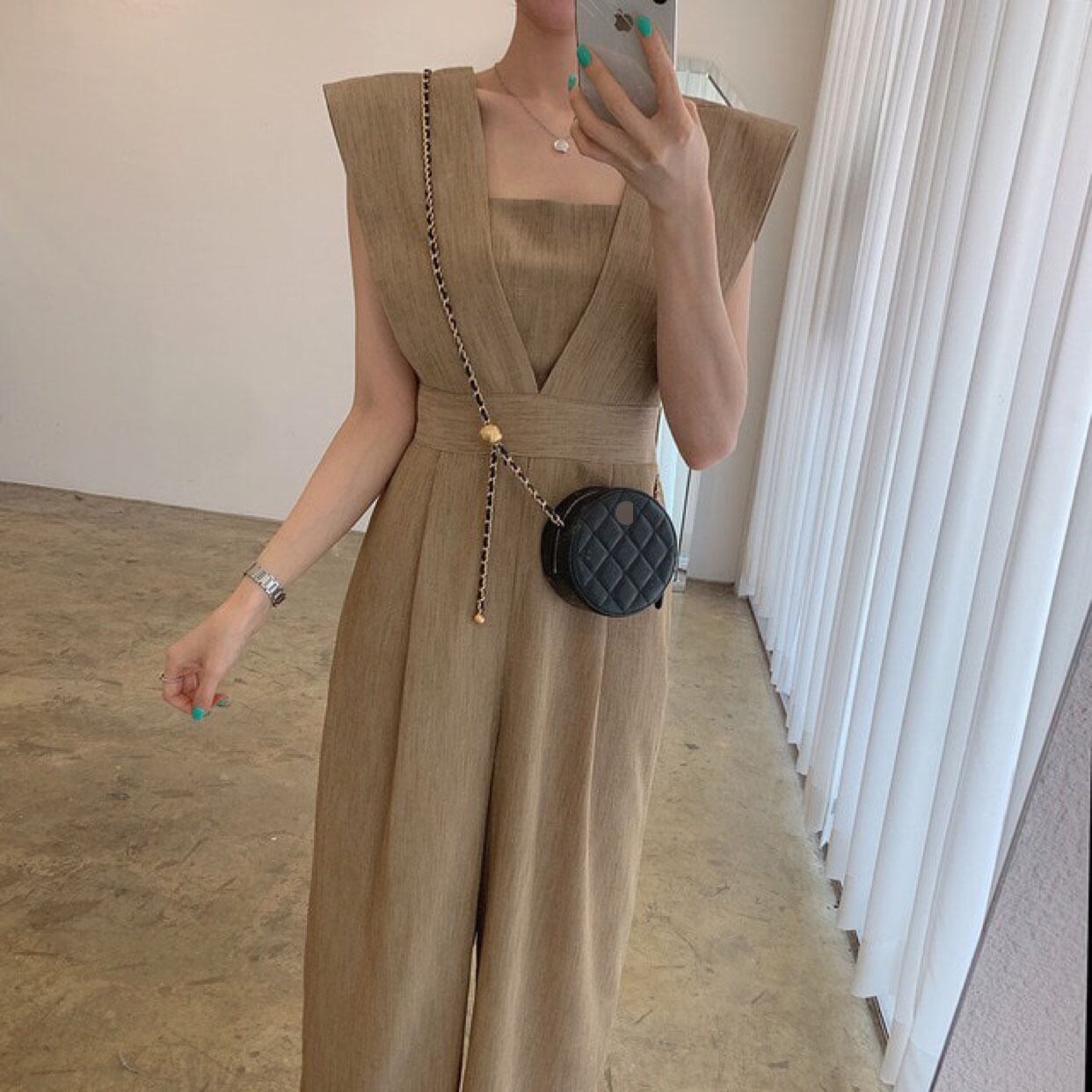 サマースタンダードカラーウェスト薄手ルーズロングノースリーブジャンプスーツ オールインワン ワイドレッグパンツ レディース レトロ 長袖 夏物 ワイドパンツ スクウェア 韓国婦人59831636604