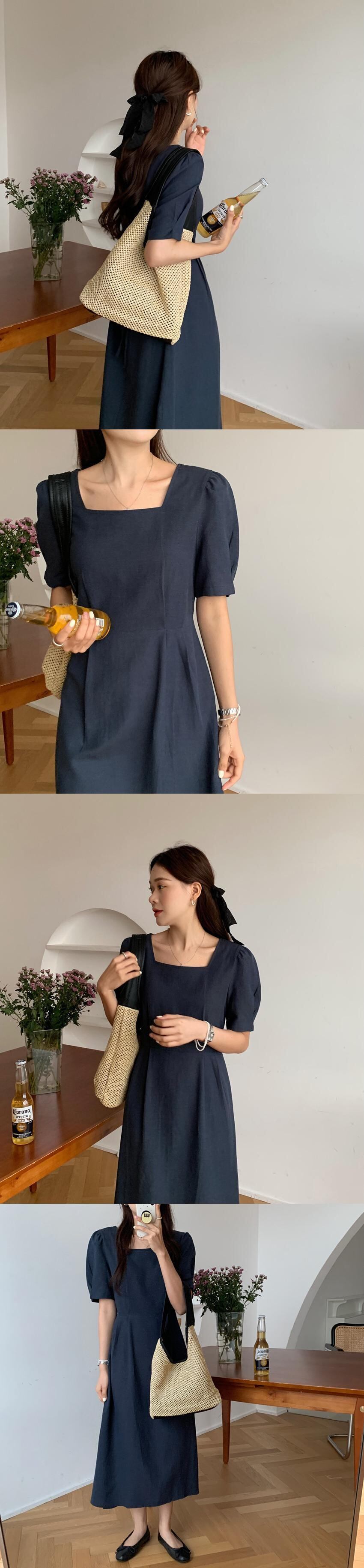 オレンジホワイトウェストドレス ロングスカート サマー 夏物 スクウェア 韓国婦人8937354368