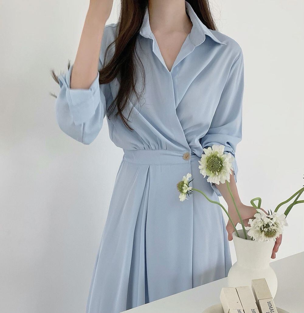 オータムスタイルボタンウェストロングシャツ ドレス レディース 秋物 韓国婦人18252873822