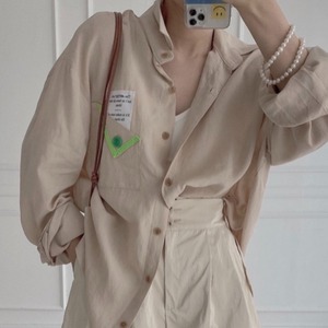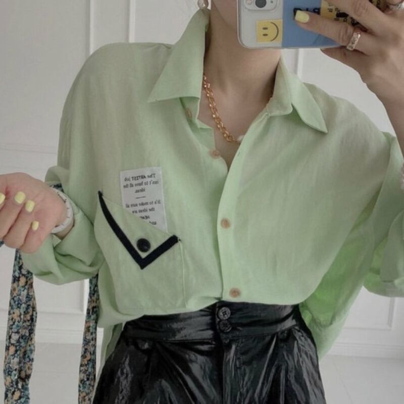 スタンダードスタイルポケットカジュアルルーズシャツ レディース ロング レトロ 韓国婦人91252482340