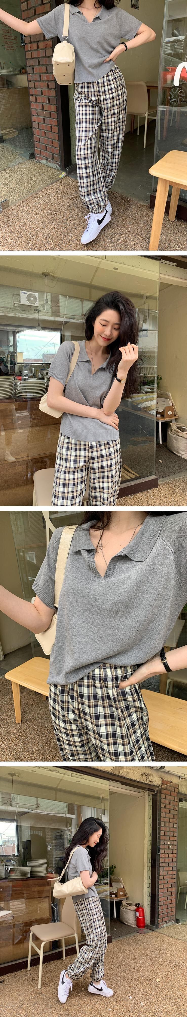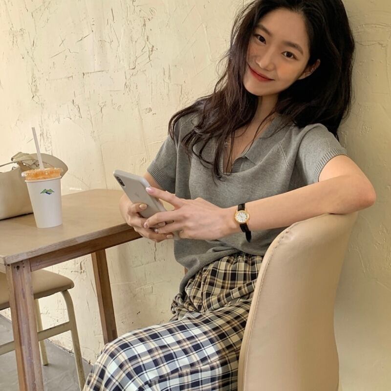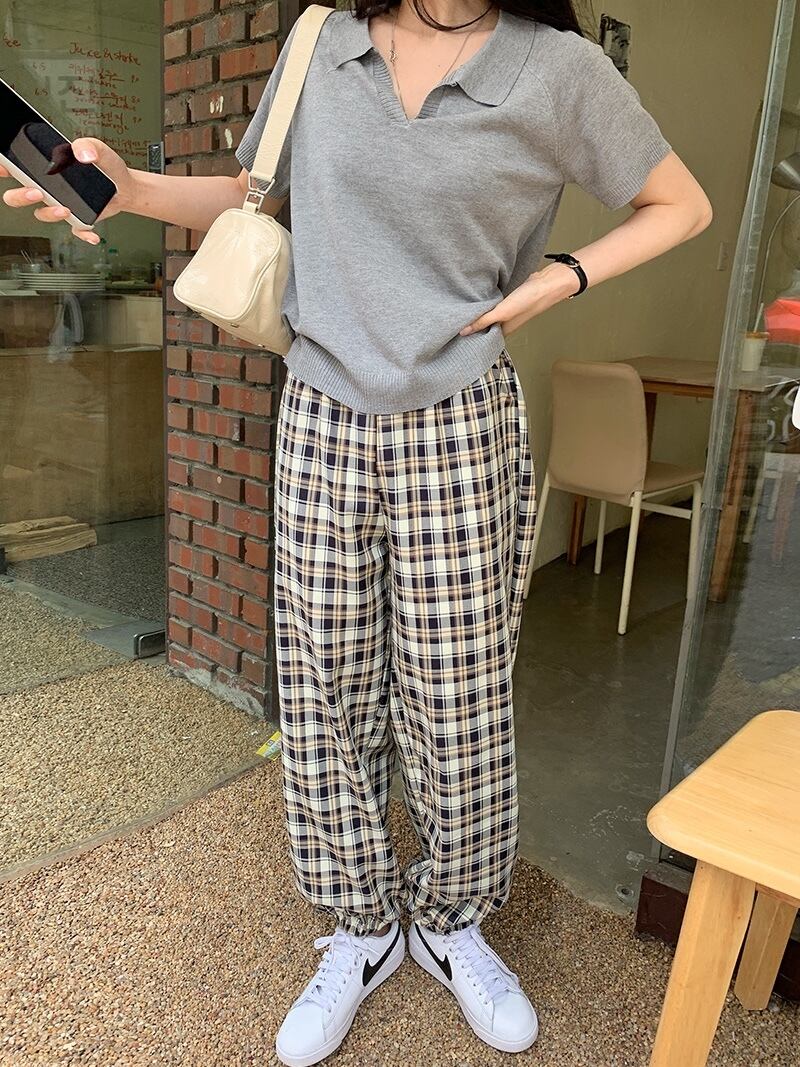 サマースタンダードカラー薄手セーター パンツ カジュアルレディース レトロ 夏物 韓国婦人96751496663