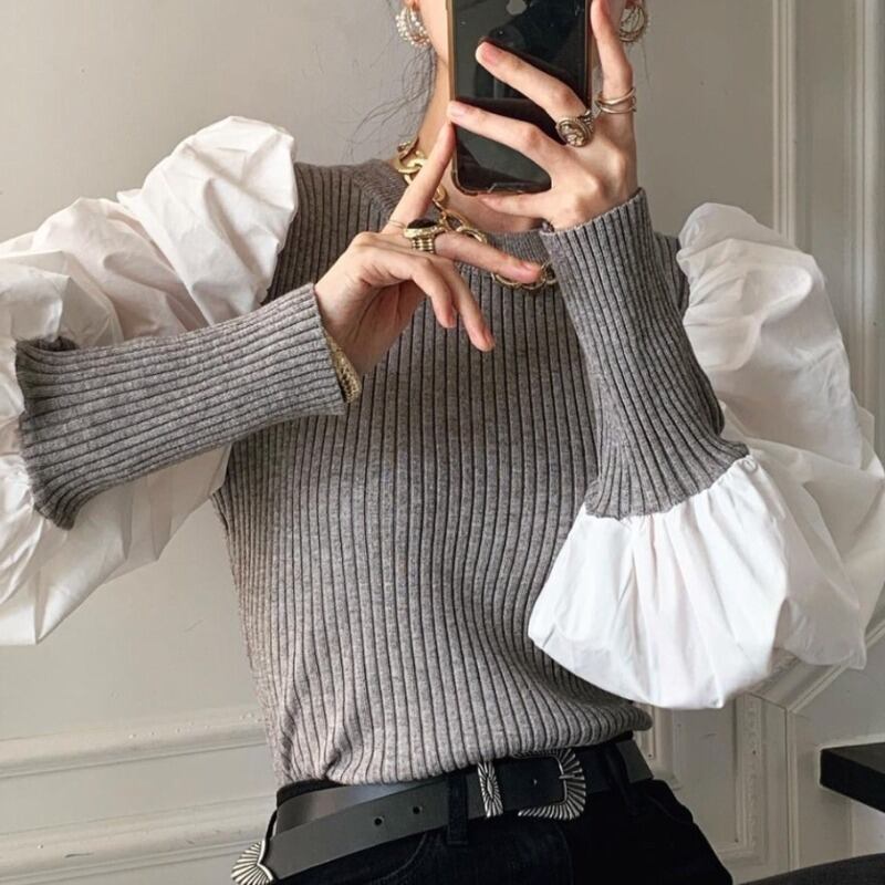 オータムスタンダードラウンドネックプルオーバー スリムスリーブシャツ セーター レディース レトロ 秋物 Oネック ステッチ 韓国婦人85633170706
