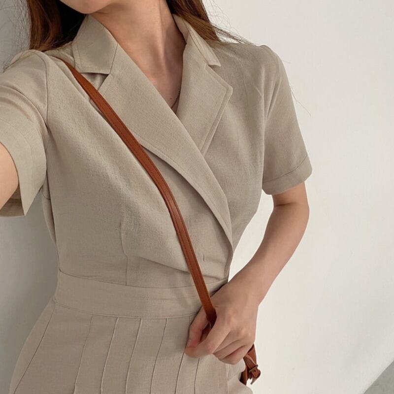 サマーカラーボタンスリムプリーツジャンプスーツ オールインワン ショートレディース エレガント 夏物 韓国婦人8168819181