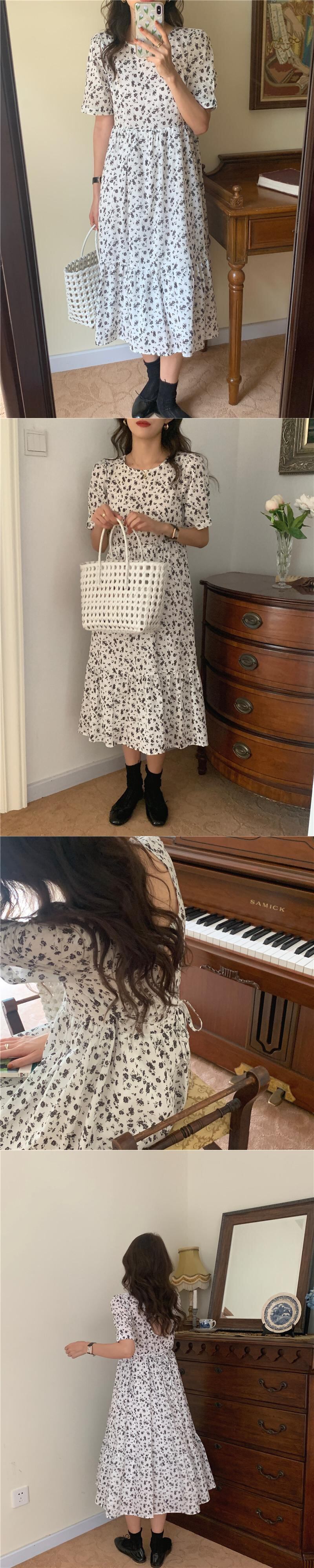 スタンダードフローラルホルタースタイルルーズドレス ロングスカート レトロ 花柄 韓国婦人1972976693