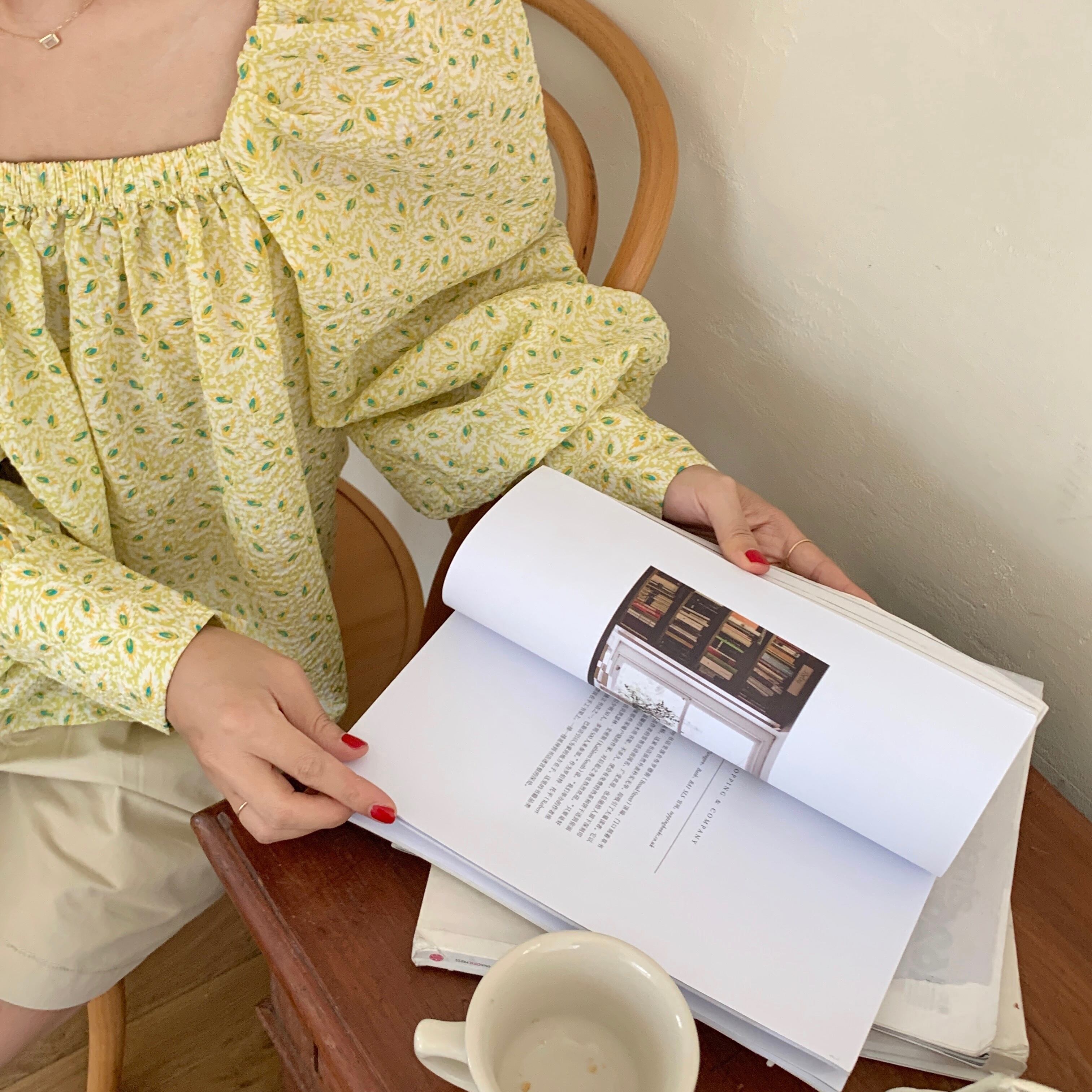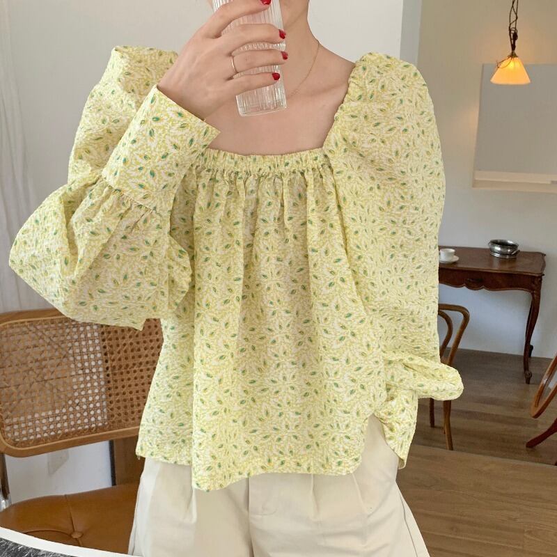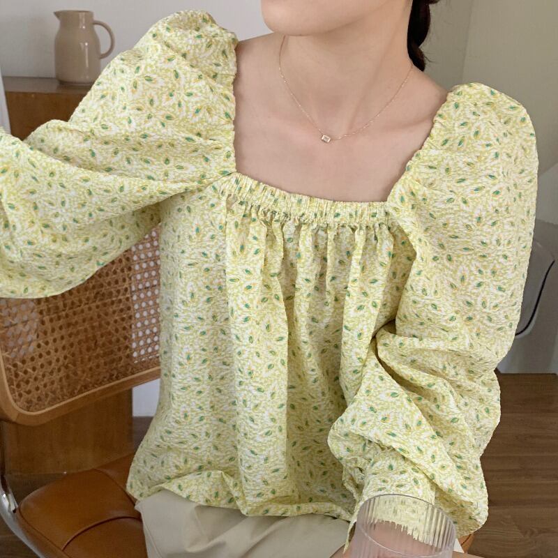 オータムカラースリーブスタイルフローラルシャツ トップス 大人ガーリー スウィート キュート カジュアル 秋物 花柄 スクウェア 韓国婦人78584492015