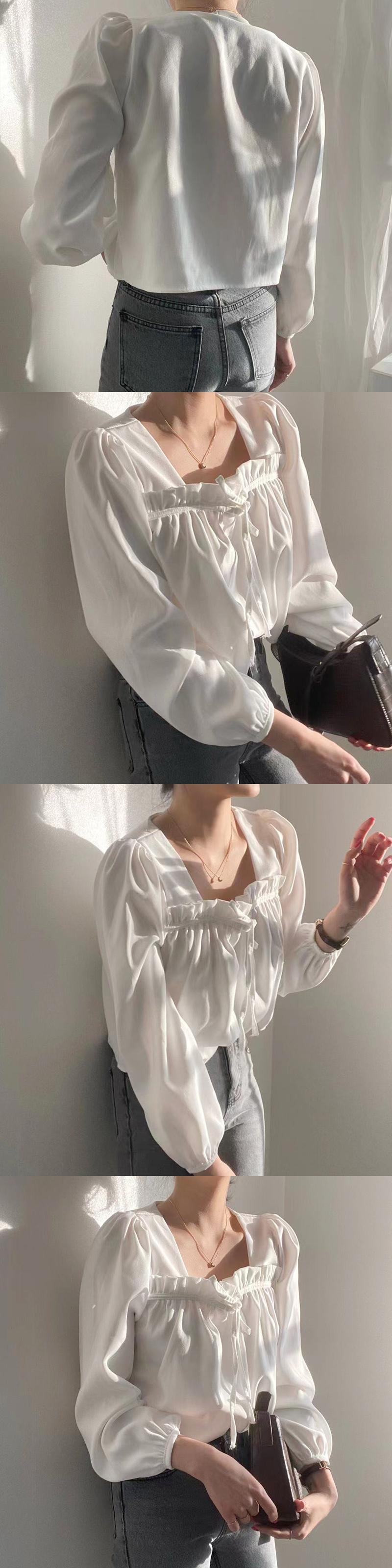 オータムカラールーズシャツ ブラウス レディース ロング 大人ガーリー スウィート キュート カジュアル 秋物 スクウェア 韓国婦人85674730835