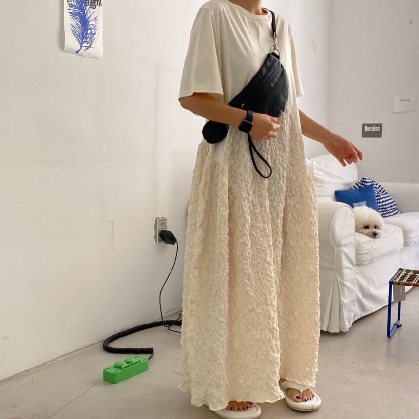 ラウンドネックルーズロングドレス Oネック ステッチ 韓国婦人36055056441